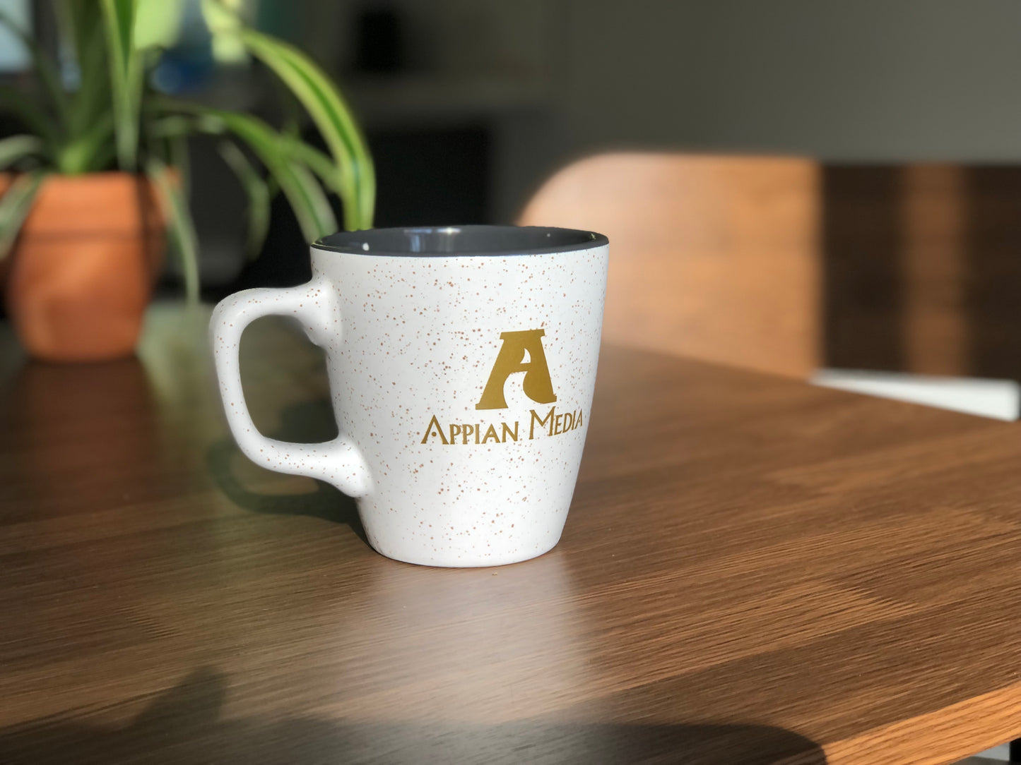 Show your support and help fulfill the mission of Appian Media all from your sofa while drinking a nice warm cup of coffee! The latest in the line of AM coffee mugs - this mug features a first-of-it's-kind gold "A" logo on a beautiful speckled ceramic mug. LIMITED SUPPLY!
